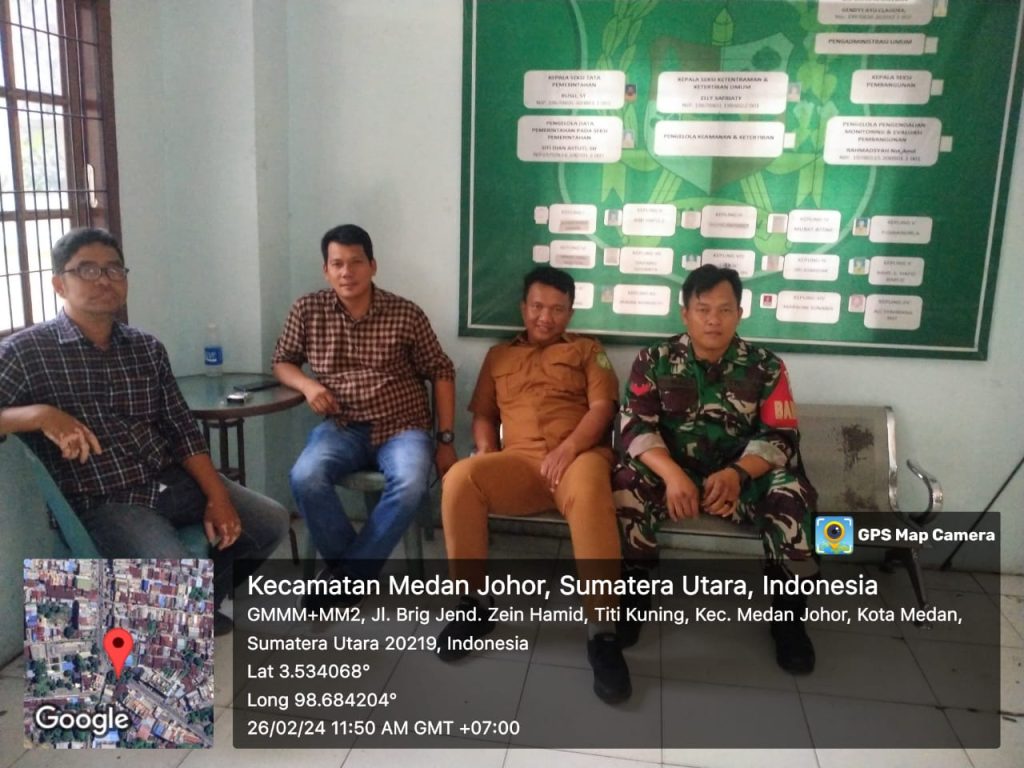 Babinsa Kelurahan Titi Kuning Koptu M.Ridwan anggota dari Koramil 0201-08/MA Kodim 0201/Medan melaksanakan Komsos dengan perangakat lurah, bertempat di Kantor Lurah Titi Kuning Jalan Bz Hamid Kecamatan Medan Johor, Senin 26 Februari 2024.