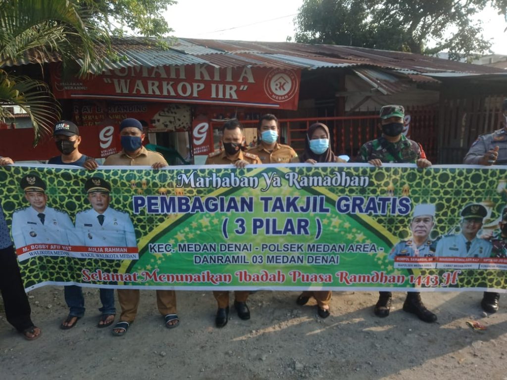 Koramil 0201-03/MD Dengan Muspika Medan Denai Dan Ormas Kepemudaan, Membagikan Takjil Gratis