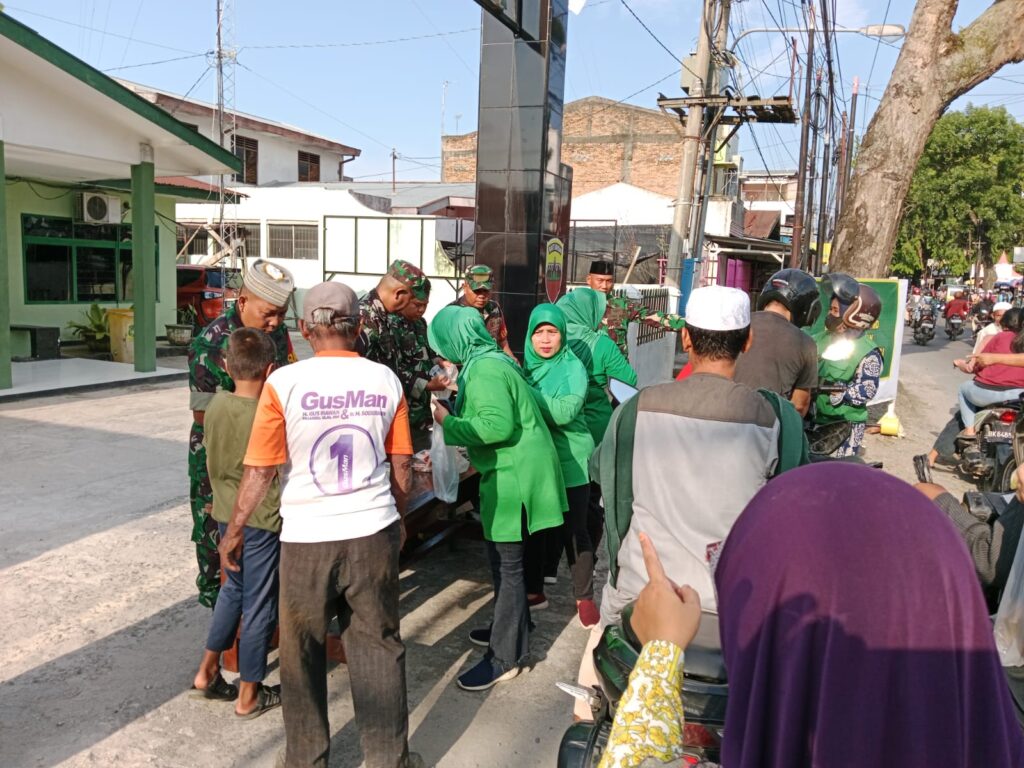 Medan Denai – Koramil 0201-03/Medan Kodim 0201/Medan berbagi takjil berbuka puasa kepada warga muslim yang melintas di depan Kantor Koramil 0201-03/Medan Denai. Selasa (04/03/2023)