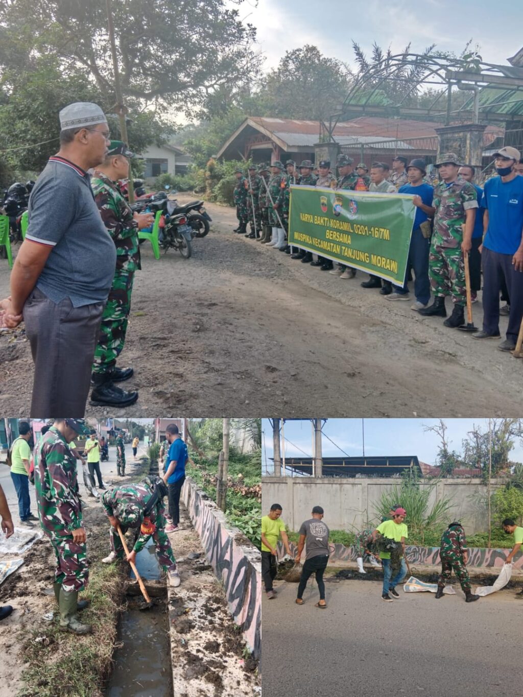 KORAMIL 0201-16/TM BERSAMA SAMA DENGAN MUSPIKA DAN BHABINKAMTIBMAS LAKSANAKAN GOTONG ROYONG BERSIHKAN JALAN INDUSTRI DUSUN 1