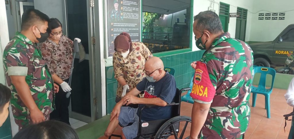 Dalam hal ini warga yang tidak sanggup berjalan di jemput oleh Babinsa untk di bawa ke Makoramil 11 Medan deli