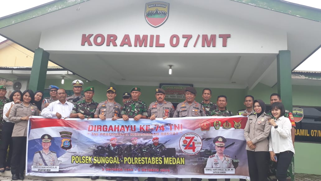 KUNJUNGI KANTOR KORAMIL 07/MT, KAPOLSEK SUNGGAL SAMPAIKAN DIRGAHAYU TNI KE-74