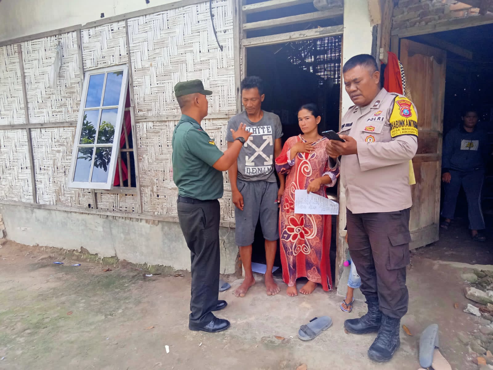 MANUNGGAL. Babinsa koramil 0201-12 HP Serda Dedi Hermanto dan Babhinkamtibmas serta kepala dusun 7 desa Manunggal melaksanakn Mediasi dgn Warga Desa Manunggal