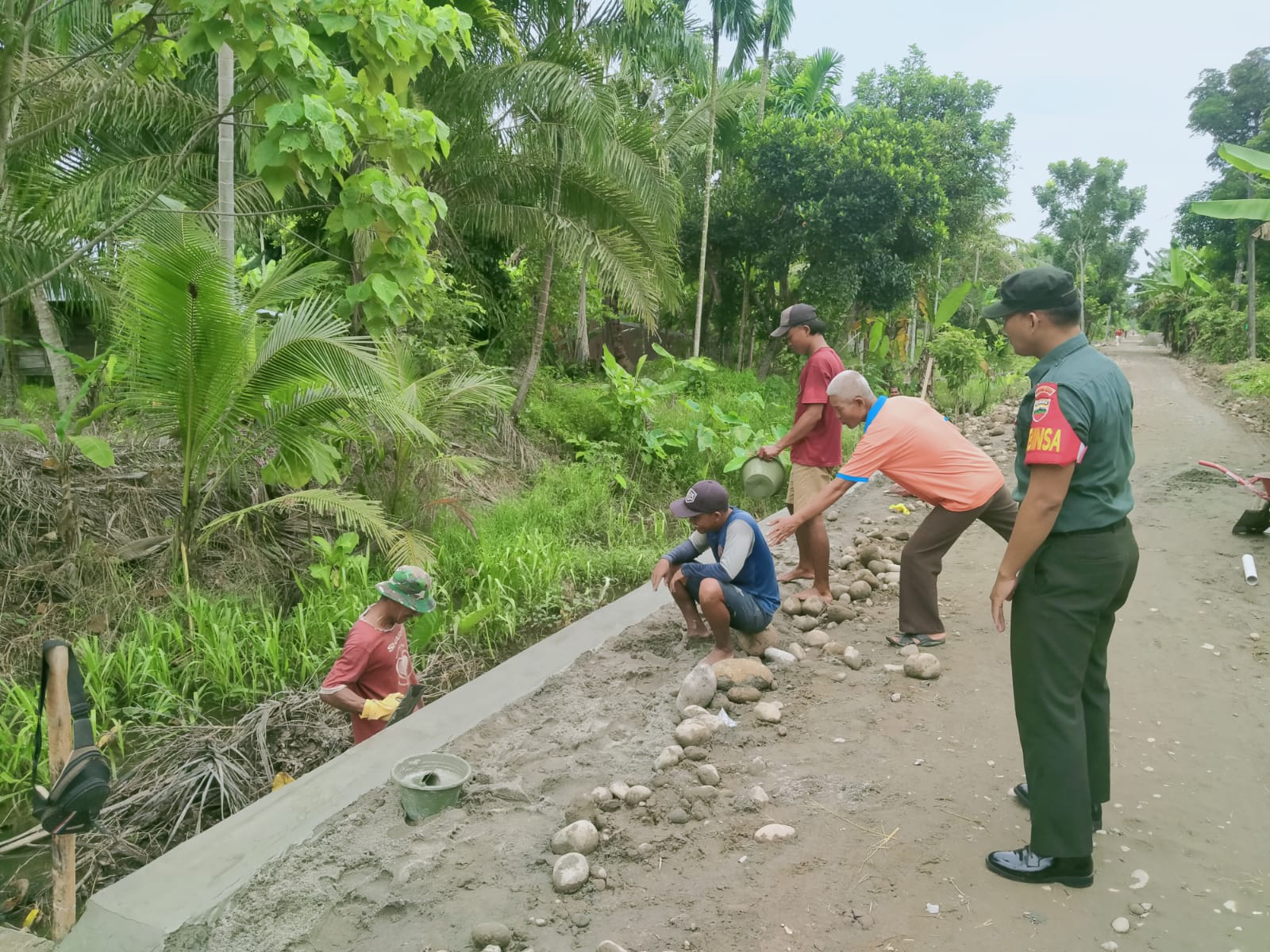 Melalui Gotong Royong Babinsa Desa Kota Datar Serda Suyadi Laksanakan Komsos Kepada Warga Yang Sedang Karya Bakti