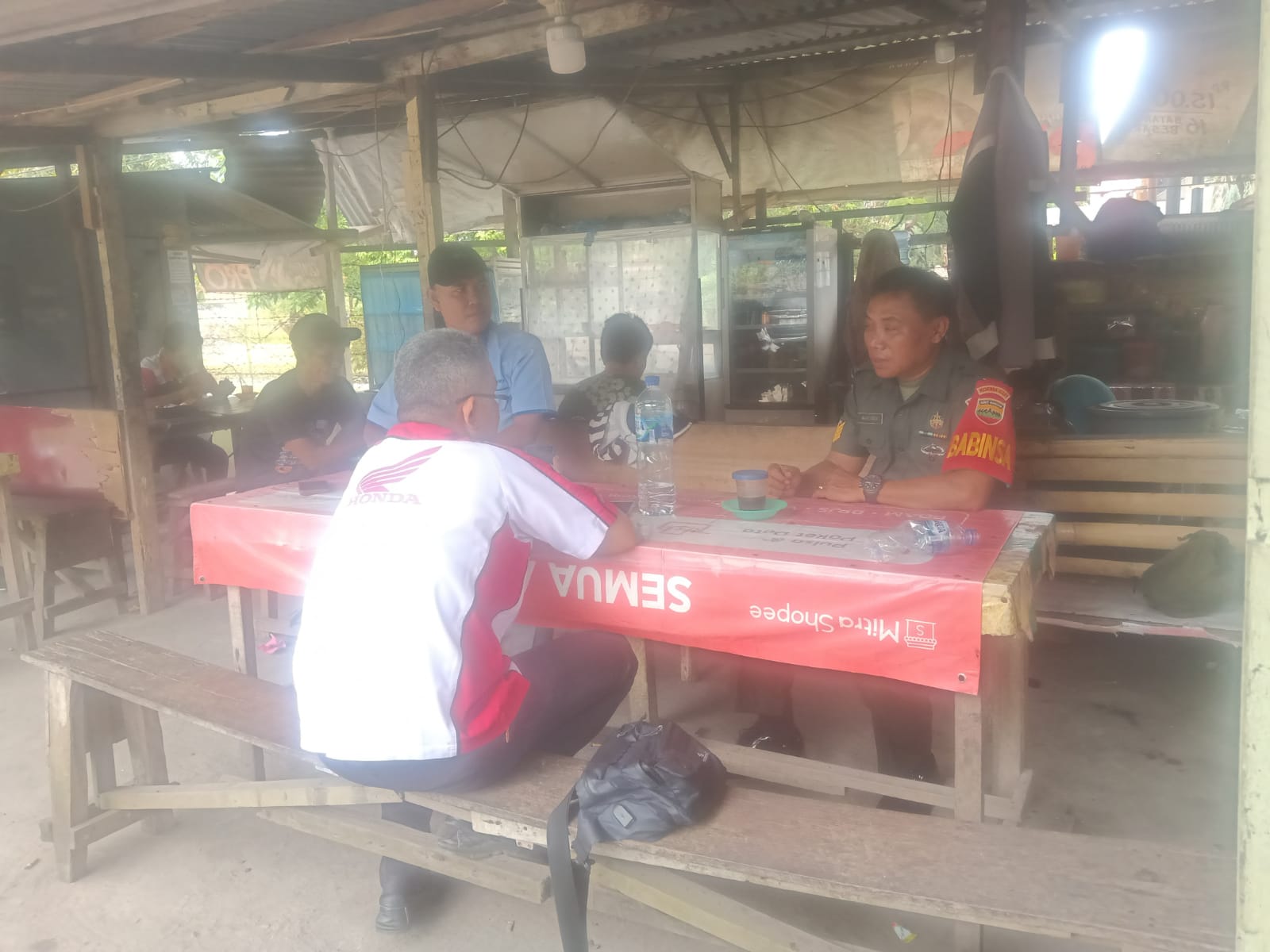 Bertempat di sebuah warung kopi Jalan Karya Wisata, Kelurahan Gedung Johor, Kecamatan Medan Johor, Kota Medan. Babinsa Koramil 0201-08/MA jajaran Kodim 0201/Medan Serma Wargono melaksanakan kegiatan Komunikasi Sosial (Komsos) dengan warga masyarakat bahas keamanan dan ketertiban di wilayah binaan. Rabu (15/03/2023)