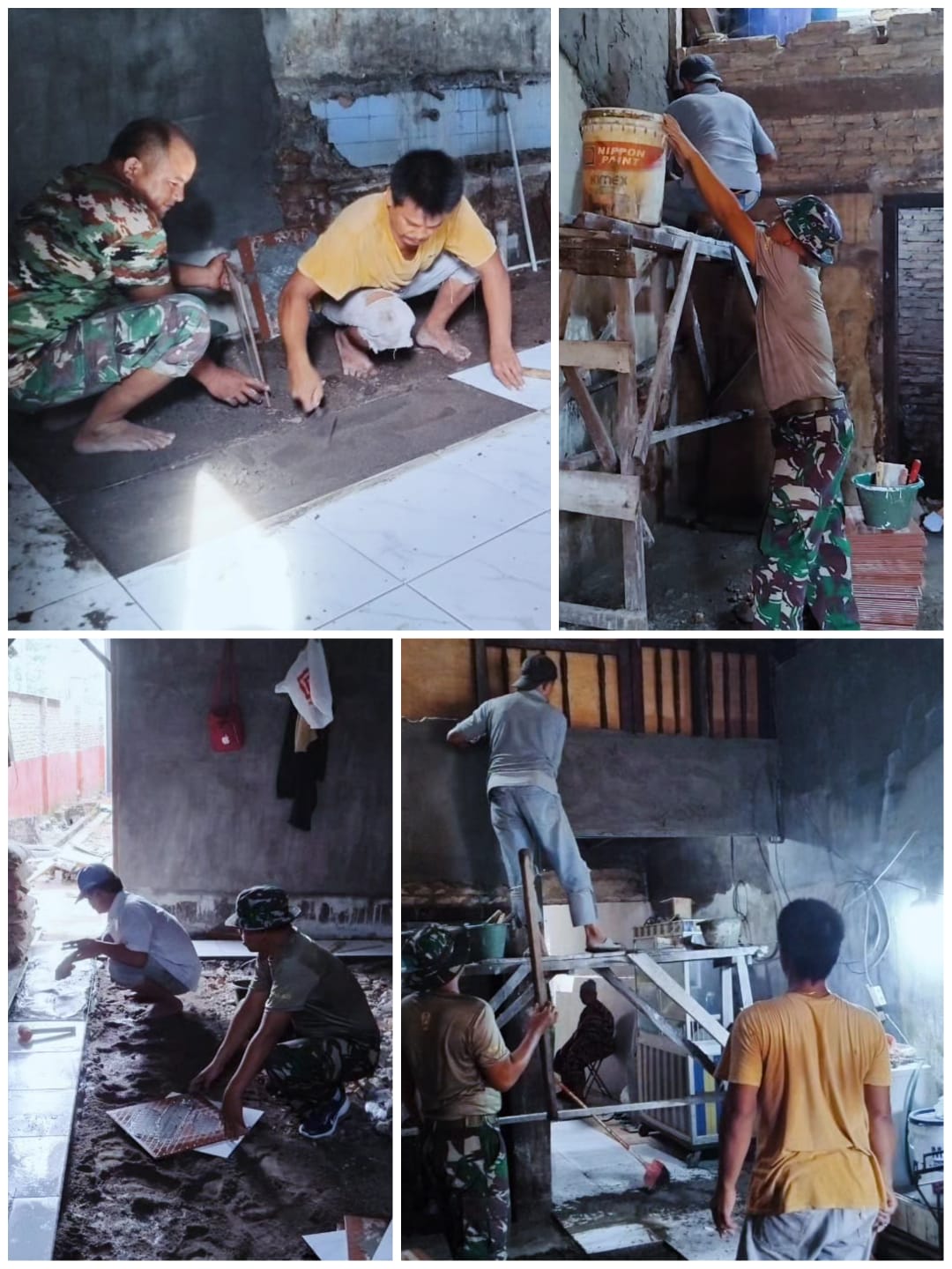 Memasuki Hari Kesepuluh, Pengerjaan RTLH Terus Di Kebut Anggota Koramil Bersama Warga