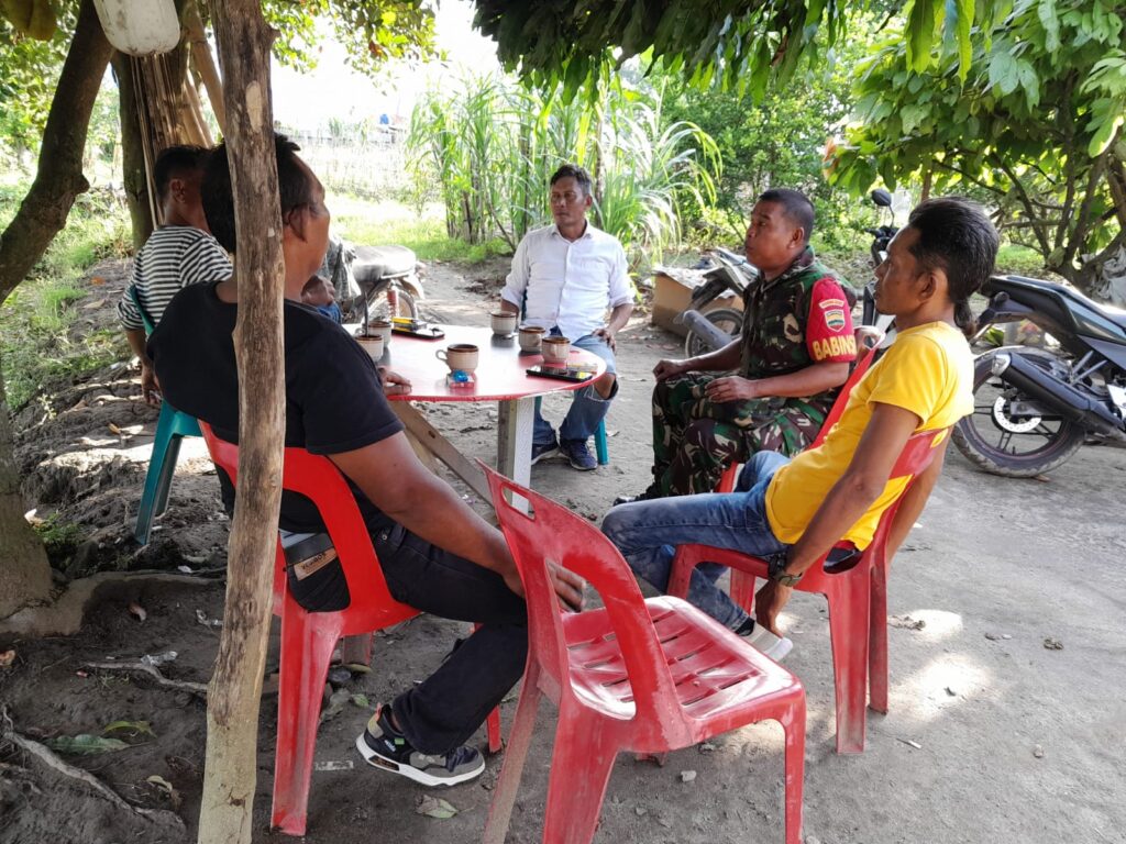 Disela komsos Serma Heriyandi Siko Babinsa Desa Bandar Klippa Koramil 0201-13/PST mengajak wujudkan pemilu damai kepada warga di dusun 18 desa Bandar Klippa Kec.Percut Sei Tuan. (2/12/2023).