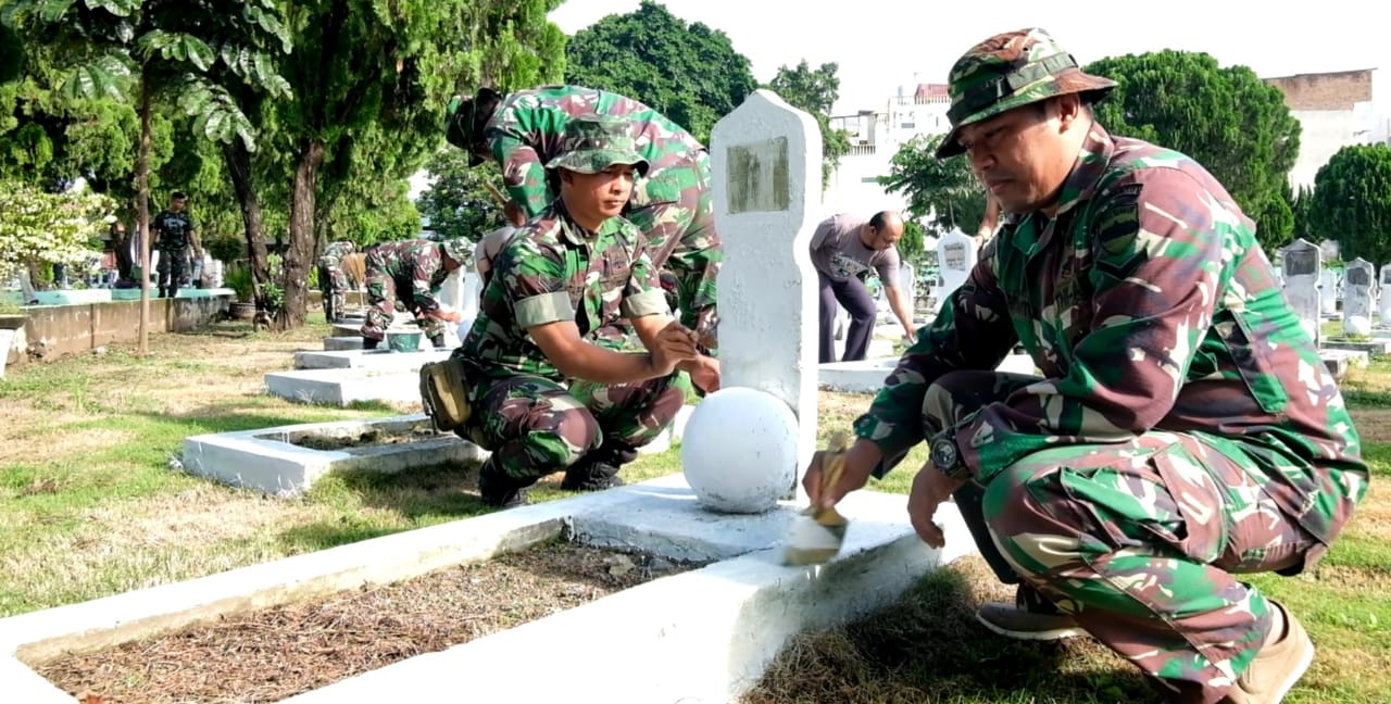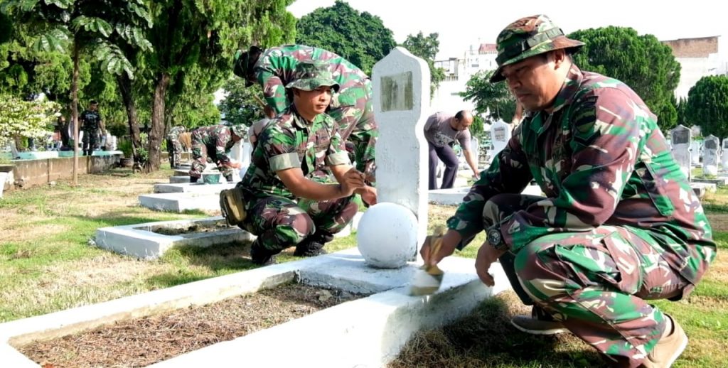 Medan|Kodim 0201/BS Medan menggelar kegiatan karya bakti massal dalam rangka menjelang Peringatan Hari Pahlawan 10 November 2019 di Taman Makam Pahlawan (TMP) Bukit Barisan Jl. S.M Raja Medan Kamis (07/11/2019)