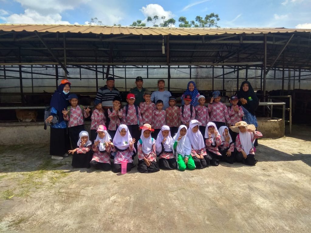 Babinsa Laut Dendang, Koramil 13/PST Pelda Jaumala, mendampingi kunjungan Outing Class siswa kelas 3 SD Alhijjrah ke peternakan lembu di Dusun II, Desa Laut Dendang, Rabu (6/11). Babinsa turut didampingi Kades dan para guru.