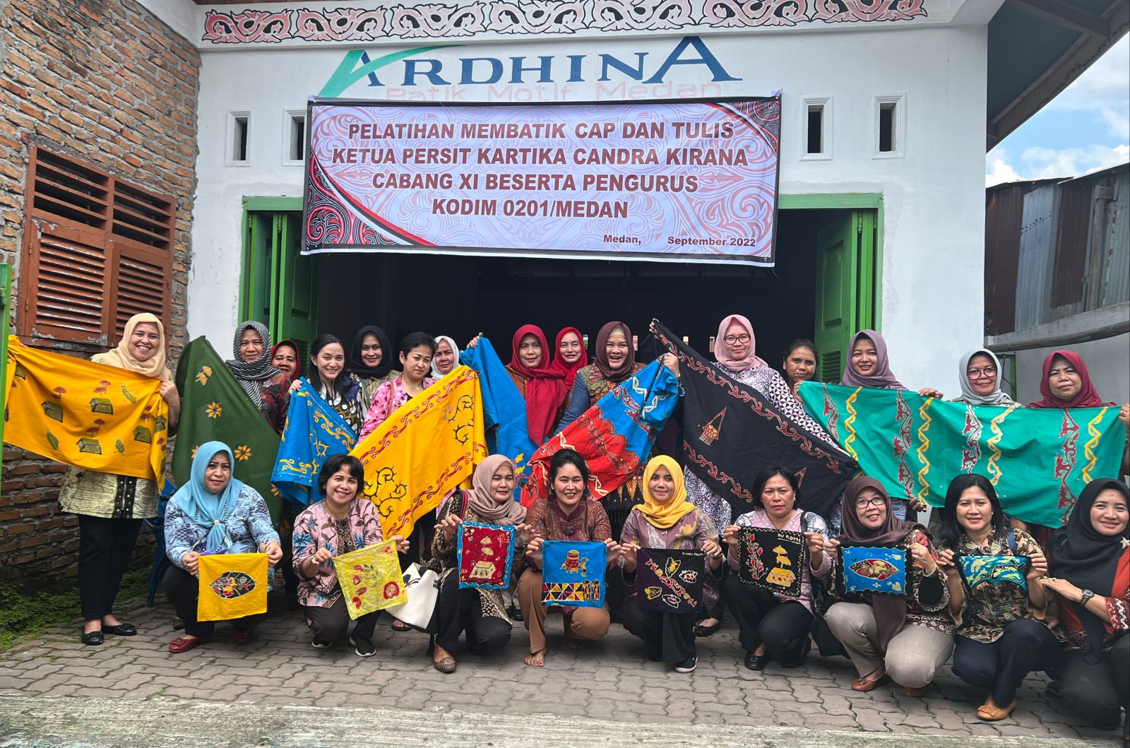 - Ketua Persit KCK Cabang XI Kodim 0201/Medan, Ny Dewi Ferry Muzawwad dan Wakil Ketua, Ny Ika Zainal A. Rambe, beserta para Pengurus Persit KCK Cabang XI Kodim 0201/Medan melaksanakan kegiatan pelatihan membatik pada Selasa, tgl 27 September 2022, di Wilayah binaan Koramil 0201-03/MD, tepatnya di Galeri Batik Ardhina, yang beralamat di Jl. Bersama No. 138 Kurahan Bantan, Kecamatan Medan Tembung,
