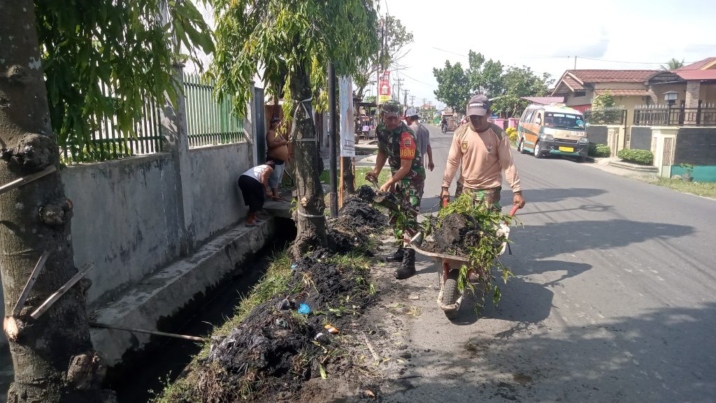Babinsa bersama masyarakat wilayah binaan melaksanakan aksi bersih atau gotong-royong untuk membersihkan parit dari rumput liar dan sampah.tujuan dari pembersihan parit tiada lain untuk memperlancar aliran air agar tidak terjadi banjir pada saat hujan tiba.