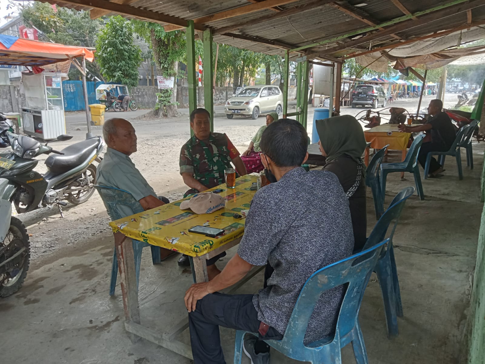MEDAN 05/MB | Babinsa Koramil 0201-05/MB Kodim 0201/Medan Serma Surianto yang bertugas sebagai Babinsa di Kelurahan Sukadamai melaksanakan komsos dengan warga binaannya di Lingkungan II Kelurahan Sukadamai, Kecamatan Medan Polonia.