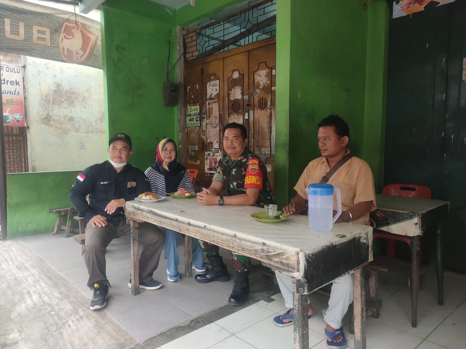 Medan – Melalui patroli wilayah Babinsa Koramil 0201-08/MA Kodim 0201/Medan Serda M.Zaluhu manfaatkan waktu untuk berkomunikasi secara langsung dengan warga binaan di sebuah warung kopi di Jalan Panglima Denai, Kelurahan Amplas, Kecamatan Medan Amplas, Sabtu (18/11/2023).