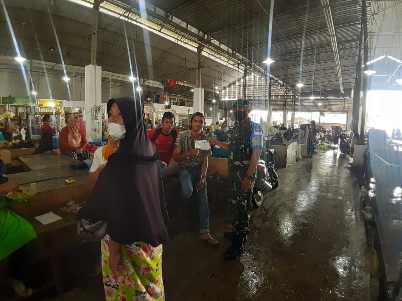 Dengan penuh semangat dan tidak kenal lelah Babinsa Koramil 0201-08/MA menyapa dan membagikan masker secara cuma – cuma serta melaksanakan himbauan tentang protokol kesehatan kepada para pedagang dan pengunjung Pasar Baru tersebut.