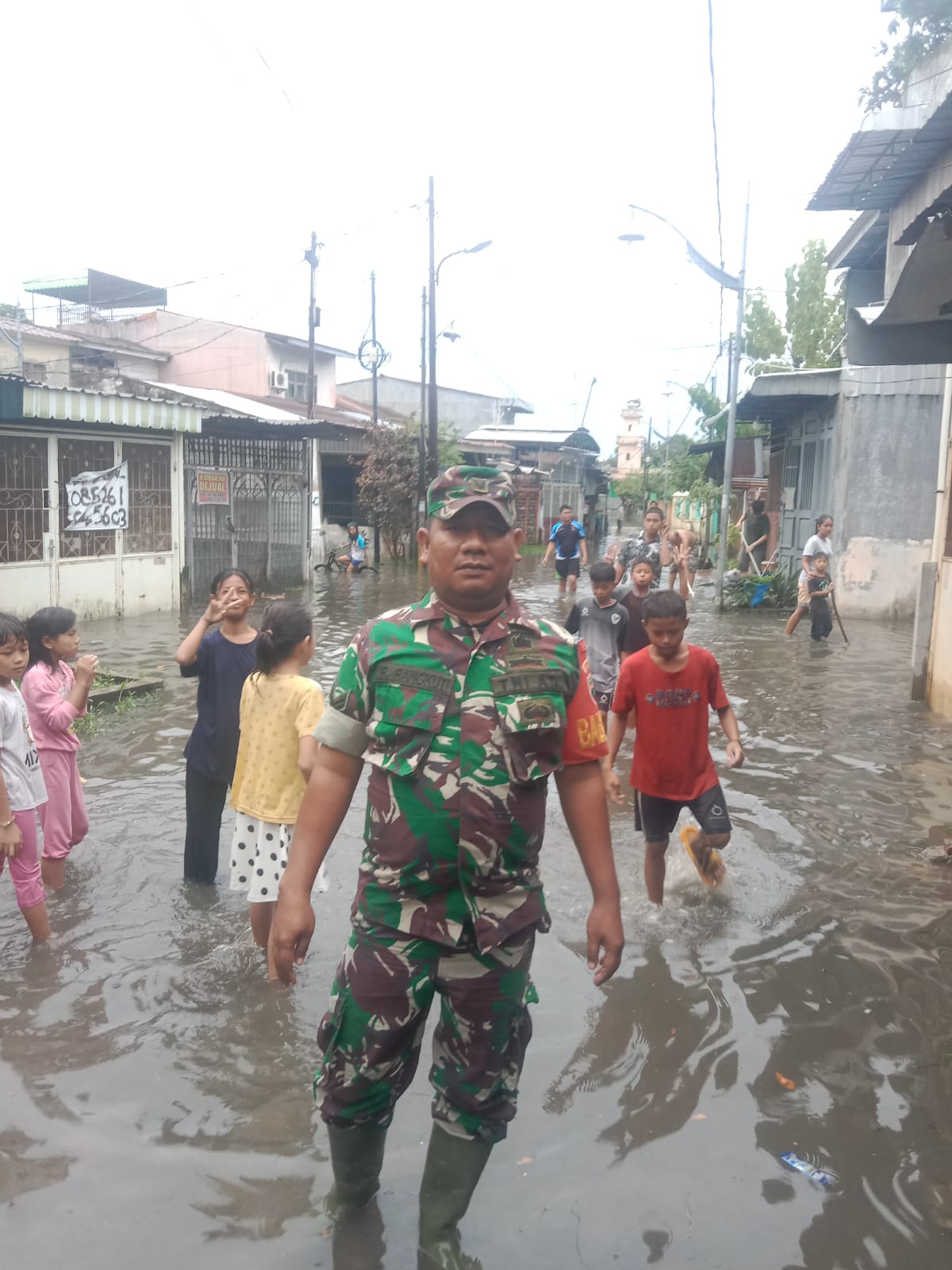 Pasca Hujan Deras, Babinsa Koramil 0201-05/MB Monitoring Banjir Luapan Sungai Deli Dan Sungai Babura