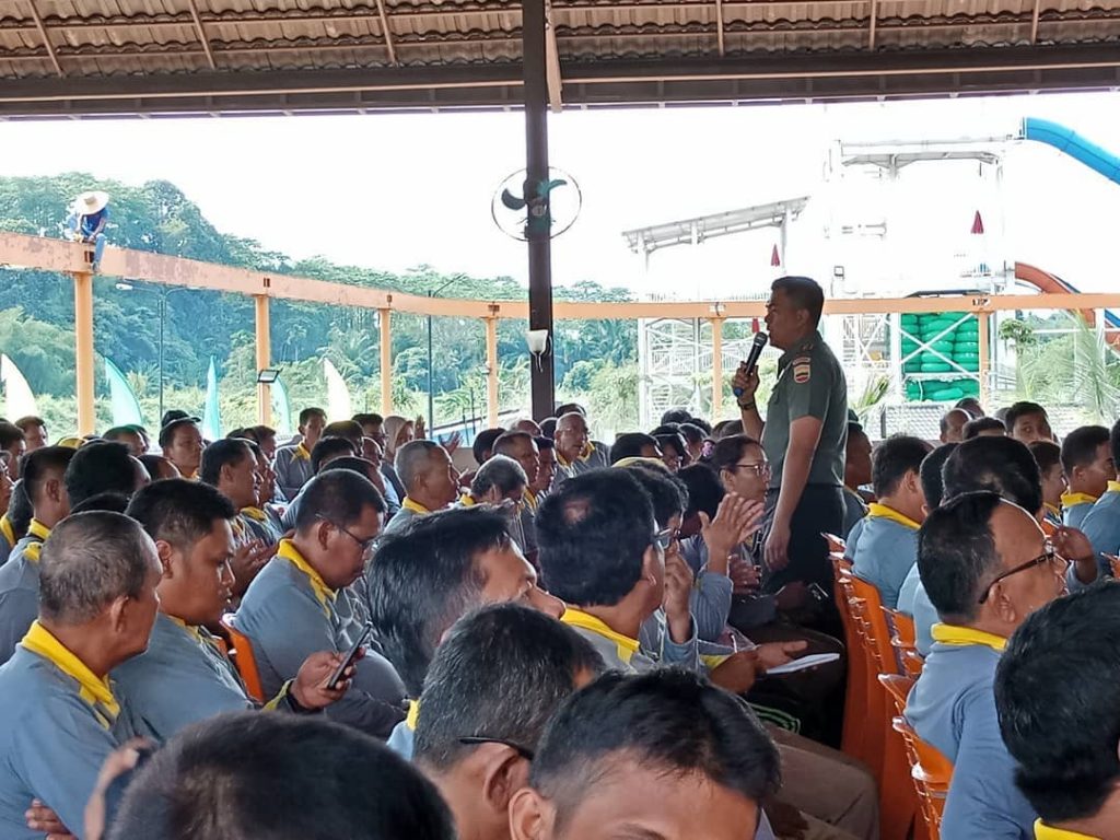 Medan | Pasi Intel Kodim 0201/BS Medan Mayor Czi Andri Prasetyo Wibowo memberikan materi tentang Bela Negara pada acara Peningkatan Kualitas Kepala Lingkungan se Kota Medan, Selasa 15/11/18 di Taman Wisata Merci Deli Tua Medan.