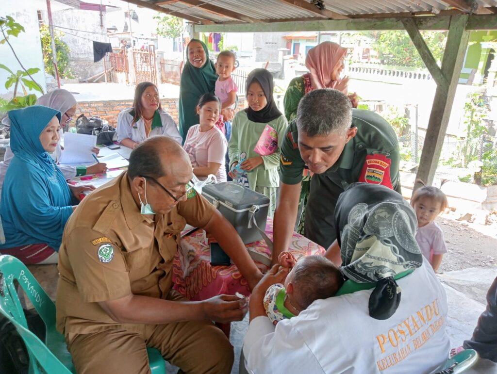 Babinsa Koramil 0201-09/MB Kodim 0201/Medan Serda Setiawan Dampingi Kegiatan Posyandu Balita di Posyandu Talang Jalan Kakap lingkungan VII Kelurahan Belawan Bahagia Kecamatan Medan Belawan,Selalu(20/06/23).