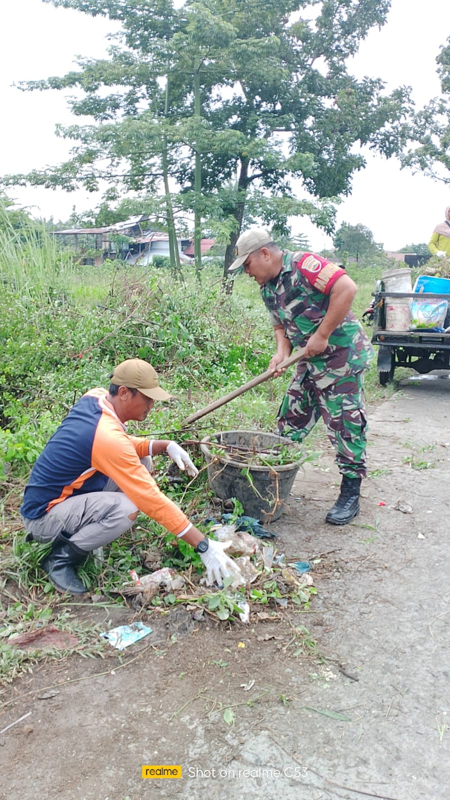 Babinsa Koramil 0201-15/DT bersama perangkat desa serta masyarakat desa marindal I melaksanakan kegiatan gotong royong dengan membersihkan jalan penghubung kecamatan Delitua dengan kecamatan Patumbak yang tertimbun sampah yg bertempat di jalan stasiun dusun IV, Desa marindal I, Kecamatan Patumbak kabupaten Deli Serdang (17/09/2025)