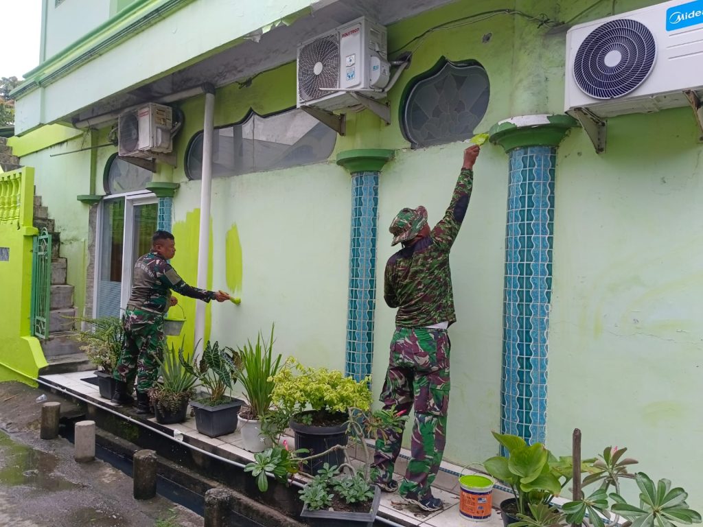 Peduli Tempat Ibadah,Babinsa Kodim 0201/Medan Lakukan Karya Bhakti Pengecatan Tembok Masjid