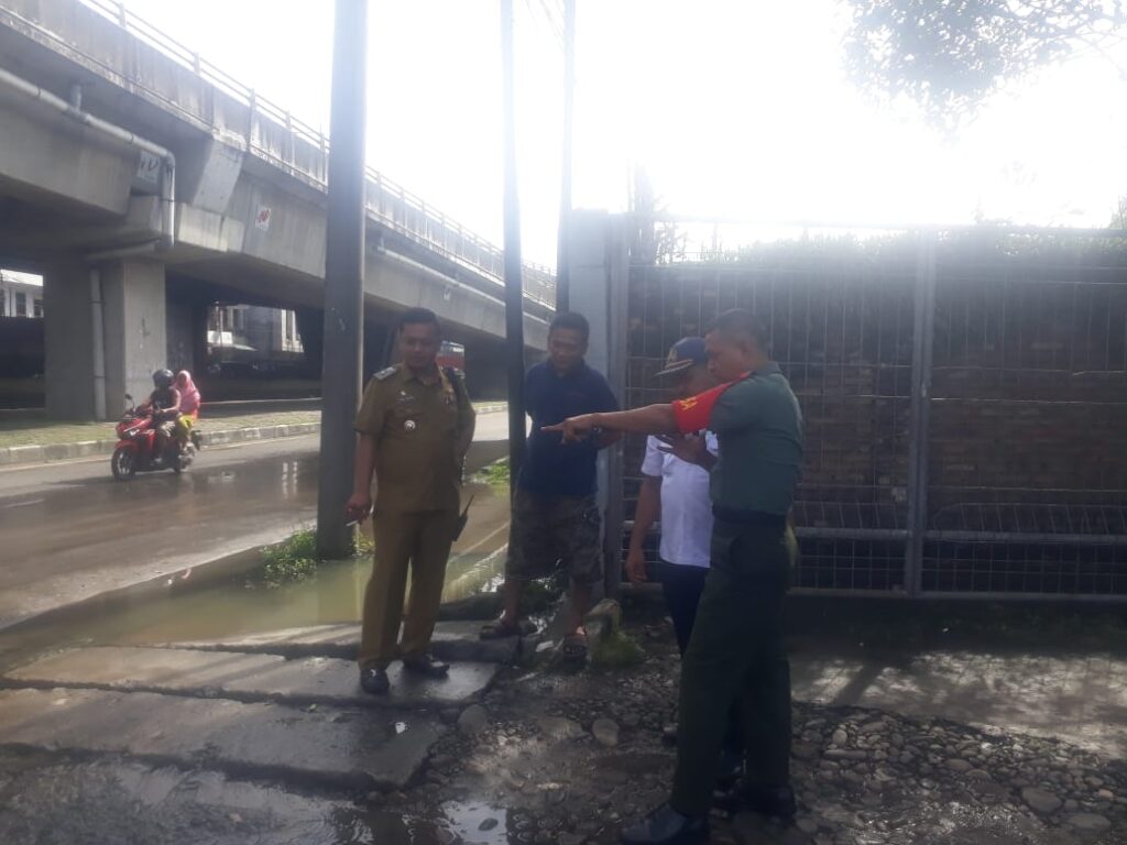 Babinsa koramil 0201-08/MA Kodim 0201/Medan Serka Susanto bersama Lurah dan Perangkatnya tinjau lokasi Drainase yang tersumbat di Jalan SM.Raja, Kelurahan Timbang Deli, Kecamatan Medan Amplas, Rabu (25/01/2023).
