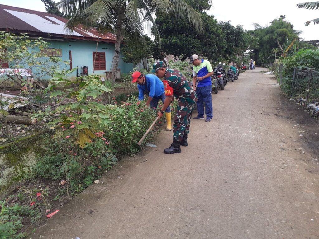 Pelihara Kebersihan Lingkungan Dan Pererat Hubungan Dengan Masyarakat, Babinsa Koramil 0201-08/MA Bersama Warga Melaksanakan Gotong Royong
