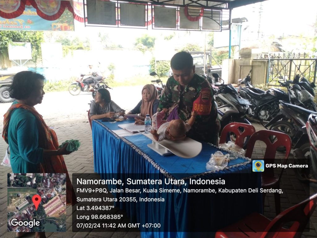 Namorambe– Bintara Pembina Desa (Babinsa) dari Koramil 14/PB Kodim 0201/Medan Serda Ade Lingga melaksanakan kegiatan pendampingan Pelayanan Posyandu di wilayah binaannya tepatnya di Kantor Desa Deli tua, Kecamatan Namorambe.