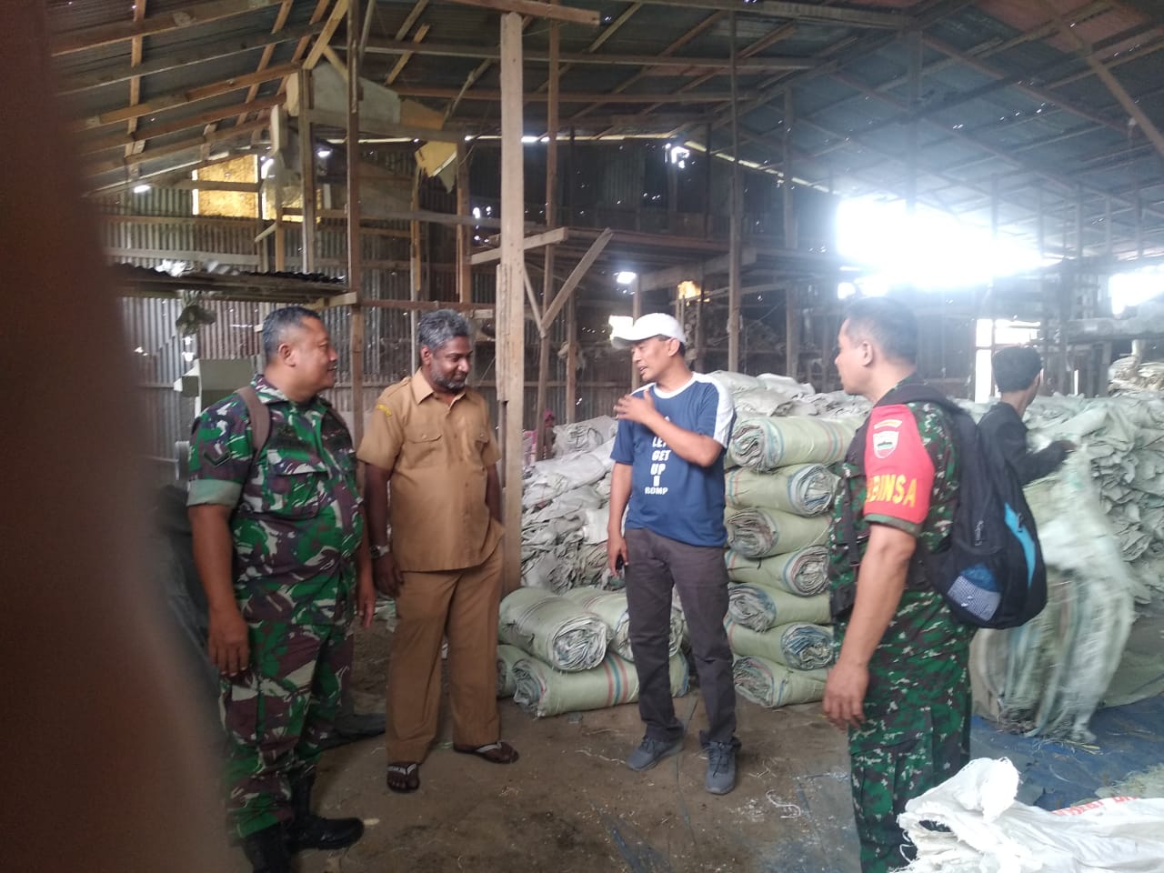 Pada kesempatan itu, Babinsa mendengar penjelasan mengenai proses di bisnis goni bekas itu. Dimulai dari membeli goni bekas, pensortiran hingga pemasaran kembali.