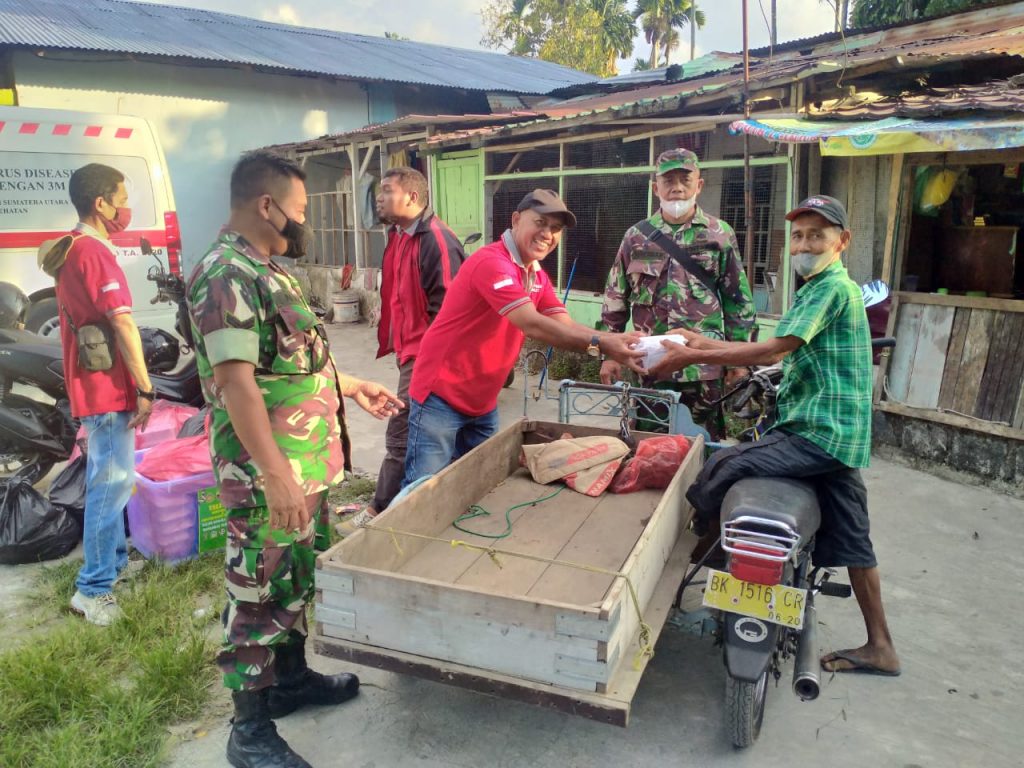 Jajaran personel Babinsa Koramil 0201-06/MS, Pelda I.Simatupang, Sertu Safari, Sertu Rokim dan Sertu Suherman Melaksanakan Pendampingan Bakti Sosial Door To Door Oleh Pemuda Maluku Kota Medan. Yang Beralamat Patai Anto Jl.Abadi LK.1 Kel.Sunggal Kec.Medan Sunggal. Jumat (29/04/2022)