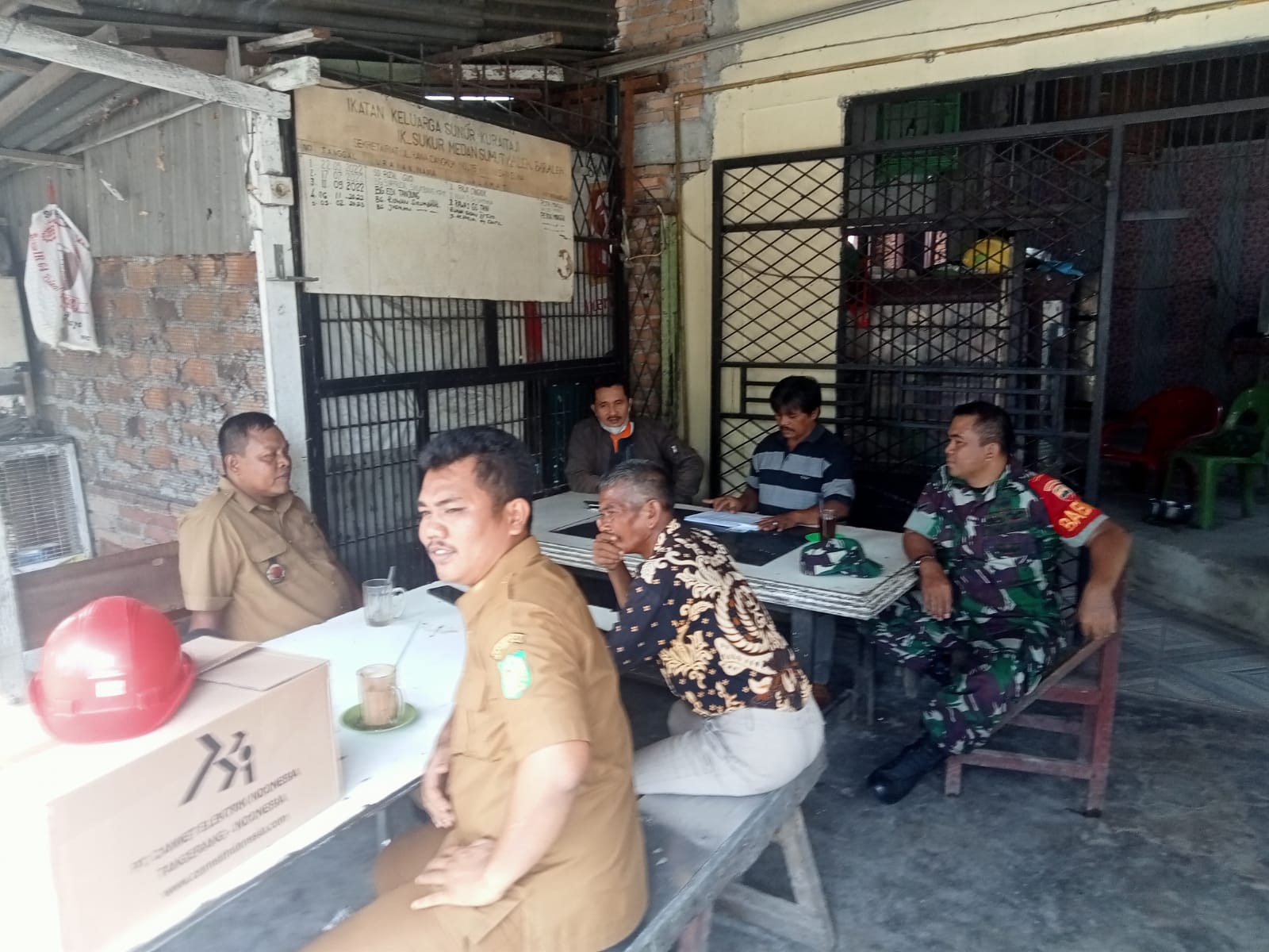 Medan Denai – Babinsa Kelurahan TSM III Serda Ahmad Suyadi Melaksanakan Komsos bersama Kepling dan warga sekitarnya di warung BPK Saimin yang beralamat di jalan Rawa ll GG sempurna no 45, Kel. TSM III, Kec. Medan Denai. Senin (12/12/2022)