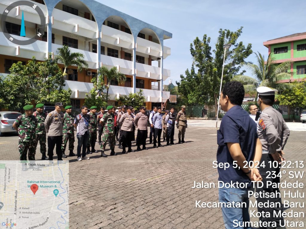 Sukseskan penyelenggaraan PON, Babinsa Koramil 0201-05/MB Kodim 0201/Medan bersama tim gabungan melaksanakan apel pengecekan dalam rangka persiapan Pengamanan PON XXI Aceh – Sumut tahun 2024 Cabor Billiard yang dilaksanakan di Pardede Hall, Jl. DR. TD Pardede, Kelurahan Petisah Hulu, Kecamatan Medan Baru.