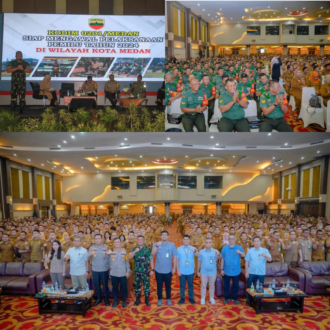 “Melalui sinergi dan kolaborasi yang kuat aparat pemerintah, TNI-Polri, tokoh masyarakat dan seluruh elemen masyarakat, mari kita wujudkan ketertiban dan ketenteraman masyarakat Kota Medan pada Pemilu dan Pilkada Serentak 2024,”kata Walikota Medan