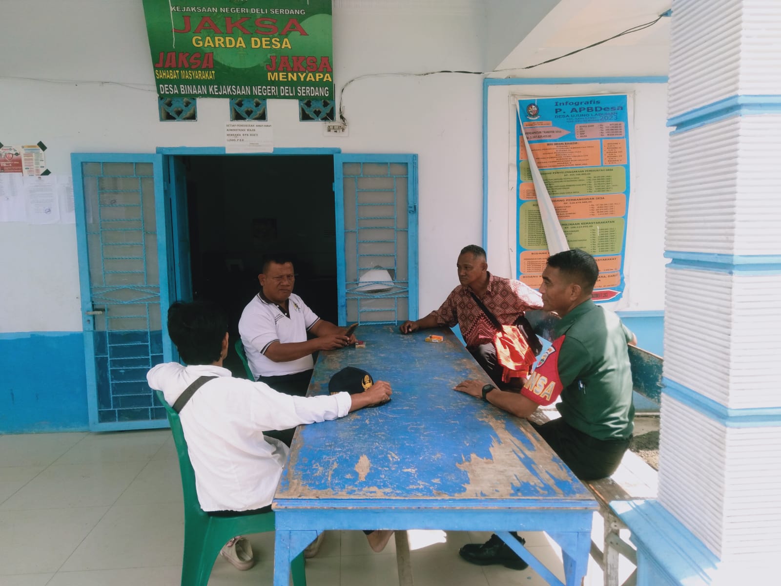 NAMO RAMBE – Babinsa Koramil 0201-14/PB Kodim 0201/Medan, Serma Effendi bersama Bapak Kadus 2 radius Sembiring, selaku Kepala dusun desa ujung labuhan melaksanakan kegiatan komsos di kantor Desa,warga binaan di Dusun 2 desa ujung labuhan Kecamatan Namo Rambe Kabupaten Deli Serdang, Rabu (27/12/23).
