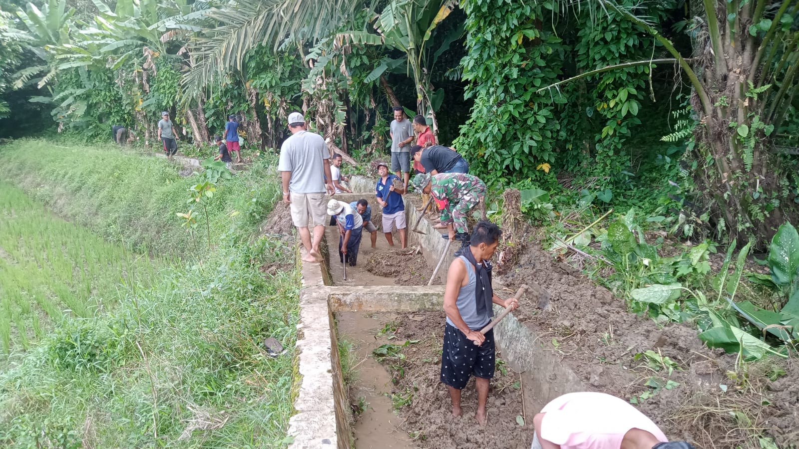 Semangat Gotong Royong Babinsa Dengan Masyarakat Membersihkan Parit
