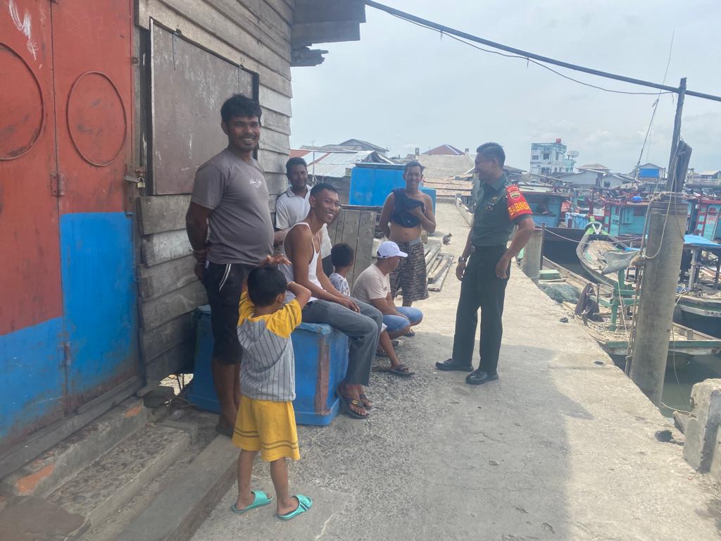 Belawan ~ Untuk mewujudkan kemanunggalan TNI dan Rakyat,Serda Suwardi Babinsa Koramil 0201-09/MB Kodim 0201/Medan melaksanakan Komunikasi Sosial (Komsos) bersama nelayan yang dilakukan di lingkungan VI Kelurahan Bagan Deli Kecamatan Medan Belawan,Kamis(06/04/23).