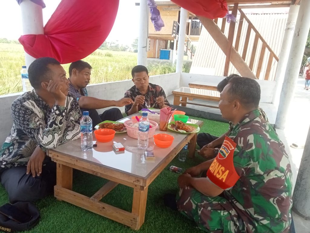 Babinsa juga sambil makan siang memberi himbauan agar staf desa berikan pelayanan yg ramah kepada warga yg mengurus administrasi dikantor desa.