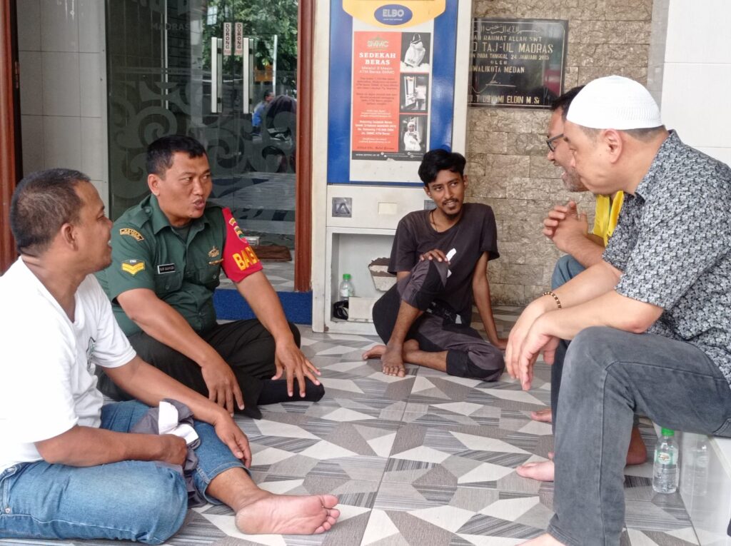 MEDAN 05/MB | Babinsa Koramil 0201-05/MB Sertu Nurwahyudi melaksanakan kegiatan Komunikasi Sosial (Komsos) dengan pengurus masjid sekaligus tokoh agama di Kelurahan Madras Hulu, Kecamatan Medan Polonia.