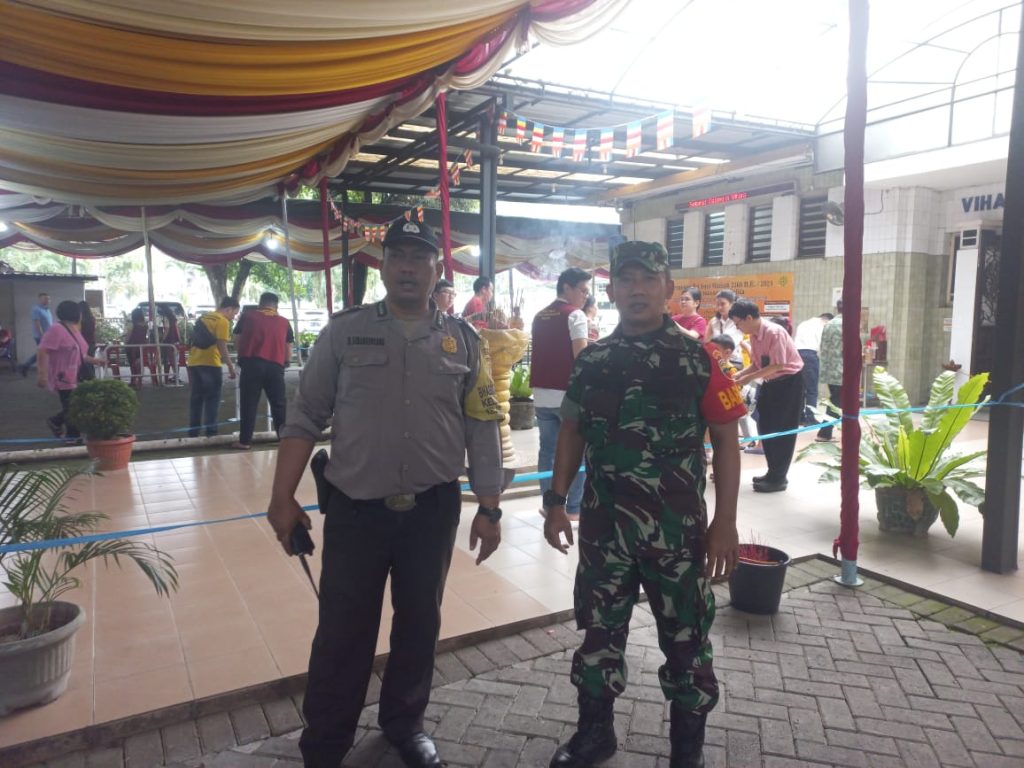 MEDAN | Babinsa Koramil 0201-05/MB Kodim 0201/Medan Sertu Oman Abdurahman melaksanakan monitoring sekaligus pengamanan kegiatan perayaan Hari Raya Waisak di Vihara Borobudur, Jl. Imam Bonjol, Kelurahan Hamdan, Kecamatan Medan Maimun. Kamis (23/5/2024)