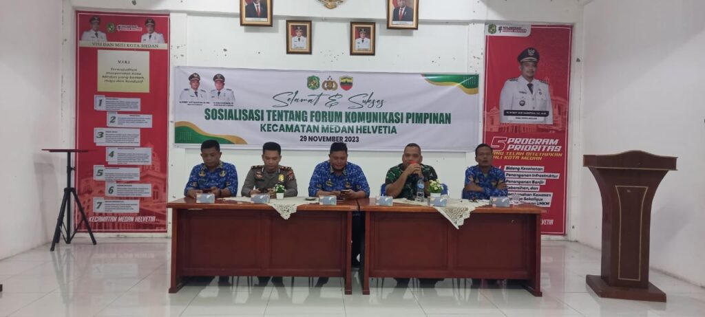 Adapun kegiatan Sisialisasi tersebut langsung dibukan Camat Medan Helvetia Bapak Putra Ramadan .S.STP dan dihadiri dari Tiga Pilar Danramil 201-06/MS Kapten Inf AM Marpaung,Kapolsek Medan Helvetia Kompol Heri Endrino Sihombing.SH.SIk.MH,kegiatan ini merupakan Untuk mempererat Hubungan dan Silaturahmi dan saling Kerjsama dengan baik dan Untuk Bahu membahu untuk menjalankan Roda Pemerintahan Kecamatan Medan Helvetia dan Cepat Menyelesaikan Permasalahan dengan Cepat,Sosialisasi Tentang Forum Komunikasi Pimpinan kecamatan Medan helvetia(Forkopimcam) harus tetap Solid dan Kompak.Tegas Camat .