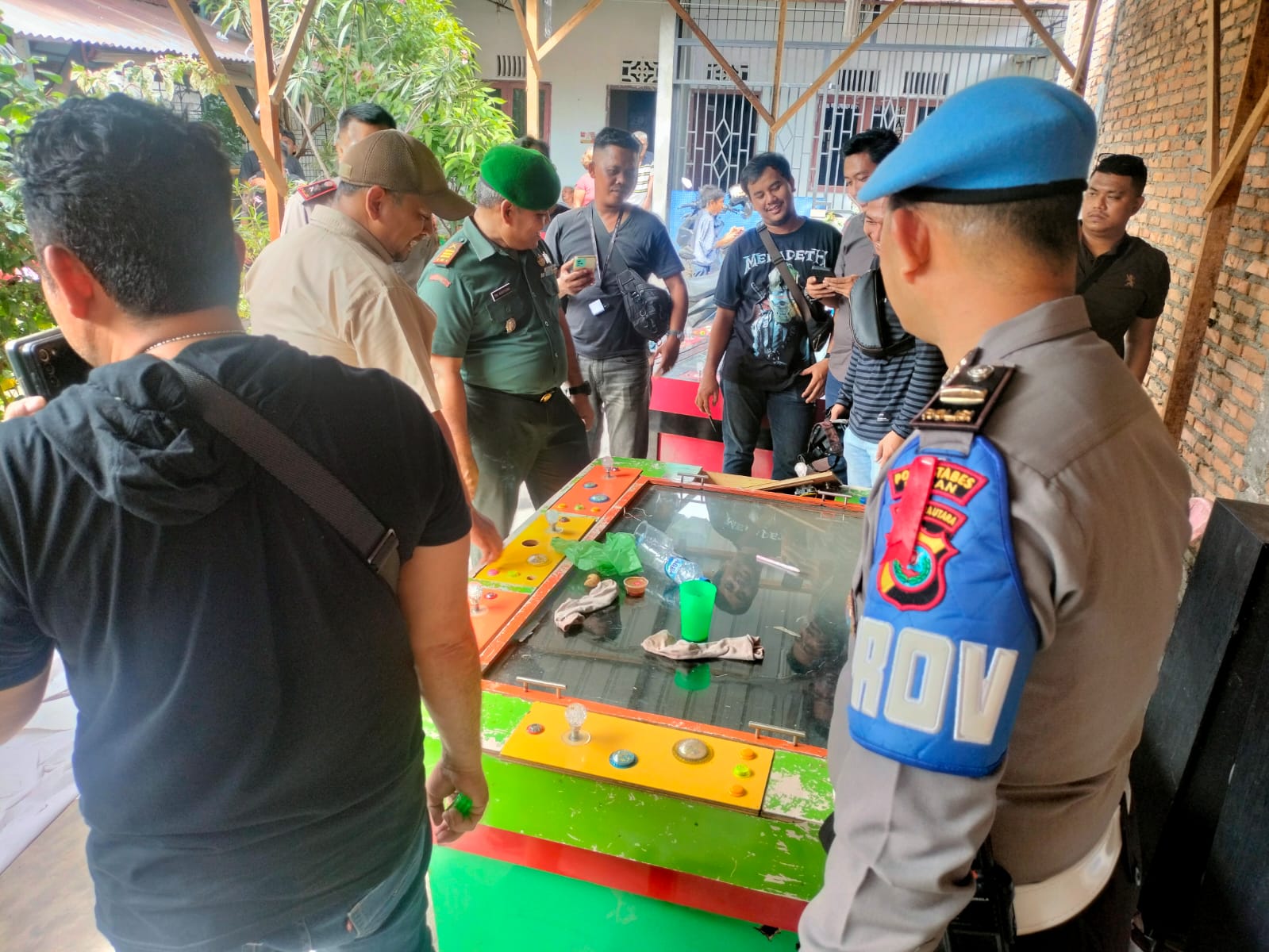 Medan.Danramil 0201-06/MS,Kodim 0201/Medan,Kapten Inf AM Marpaung,Kapolsek Medan Sunggal Kompol Yudha Chandra Perantara,SIk,MH,Camat Medan Sunggal T.Chairuniza.S.Sos.MAP (Muspika Kecamatan Medan Sunggal) dan Dampingi Kanit Reskrim Polrestabes Medan Kompol Teuku Fatir Mustafa bersama Anggota,Ketiga Unsur Tiga Pilar saling Kerjasama Untuk melakukan penggerebekan perjudian dan narkoba oleh Polresta Medan pada Hari Kamis 21.12.2023
