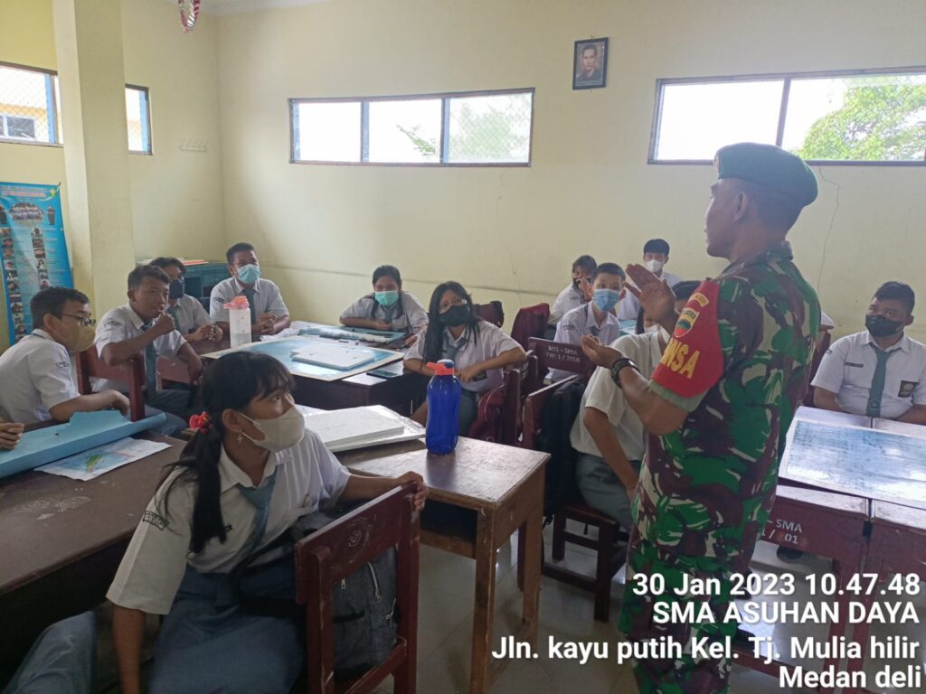 Medan Deli – Dengan selogan Pertiwi memanggil, Babinsa Koramil -11/MD Kodim 0201/Medan berperan aktif melakukan sosialisasi tentang Penerimaan Prajurit TNI AD tepatnya di Yayasan SMA ASUHAN DAYA jln. Kayu putih Kel. Tj. Mulia hilir kec. Medan deli, Senin (30/01/2023).