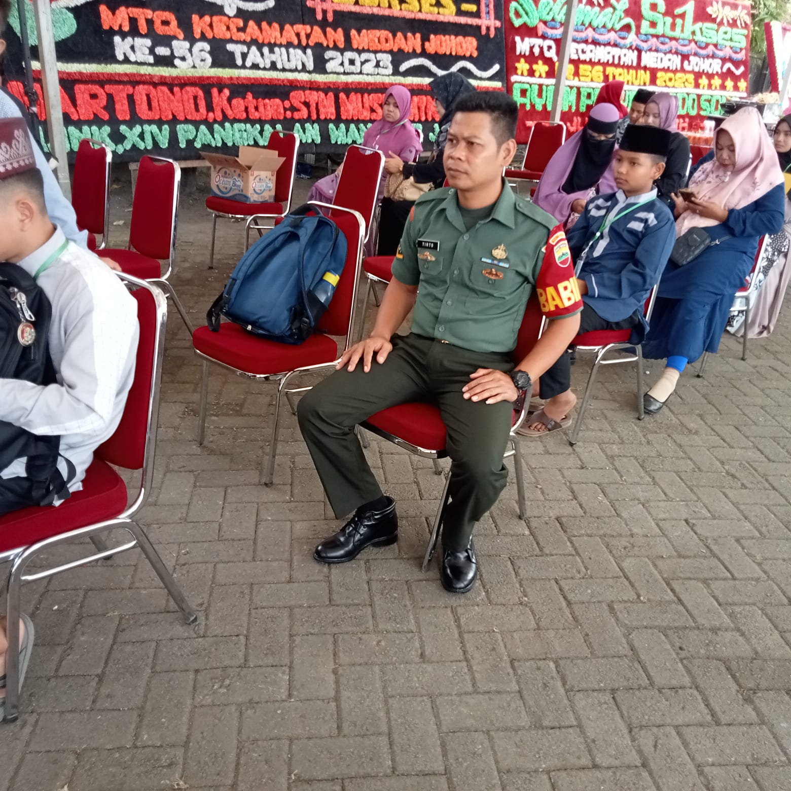 Babinsa Koramil 0201-08/MA Kodim 0201/Medan Serda Tirto memonitoring dan mengamankan acara Penutupan MTQ yang Ke 56, Tahun 2023 Se-Kecamatan Medan Johor.