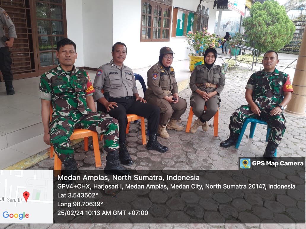 Seperti hal nya yang dilaksanakan 2 ( Dua ) orang Babinsa Koramil 0201-08/MA Kodim 0201/Medan Serda Ahmad Hasibuan dan Serda J.Sinaga bersama Anggota Polsek Patumbak dan Satpol PP melaksanakan Pengamanan dan Pengawasan Rekapitulasi penghitungan suara hasil pemilihan umum Pilpres dan dan Pileg tahun 2024 di halaman Kantor Kecamatan Mendan Amplas, Jalan Garu I, Kelurahan Harjosari I, Kecamatan Medan Amplas, Minggu 25 Februari 2024.