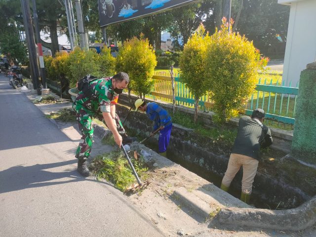 “Gotong royong meningkatkan kebersihan lingkungan tersebut, merupakan salah satu media pemersatu dan bentuk kecintaan TNI kepada warga”. Ujar Danramil.