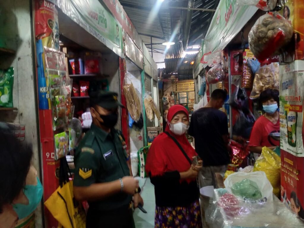 Tak Pernah Bosan Babinsa Koramil 0201-06/MS Laksanakan Operasi Yustisi dan PPKM Mikro Dipasar Tradisional