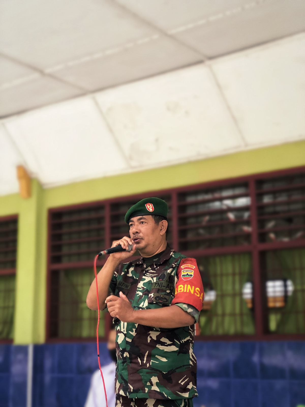 TANAMKAN NILAI MORAL DAN KEBANGSAAN, PERSONIL KORAMIL 0201-03MD SERKAJAMIL HASIM MEMIMPIN UPACARA BENDERA DI SEKOLAH