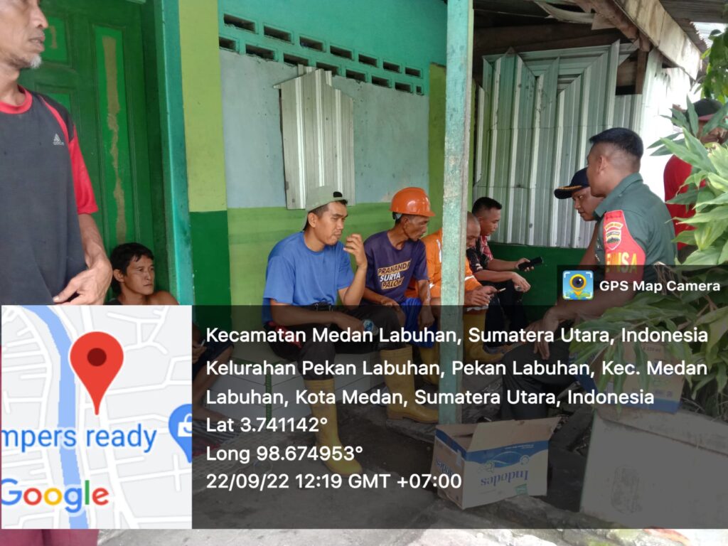 Medan Marelan – Babinsa Koramil 0201-10/MM, Kodim 0201/Medan Sertu Harsoyo melaksanakan komsos dengan P3su Kec. Medan labuhan di, Jl. KL Yos Sudarso lingk 17 Kel. Pekan Labuhan, Kec. Medan Labuhan. Kamis (22/9/2022)