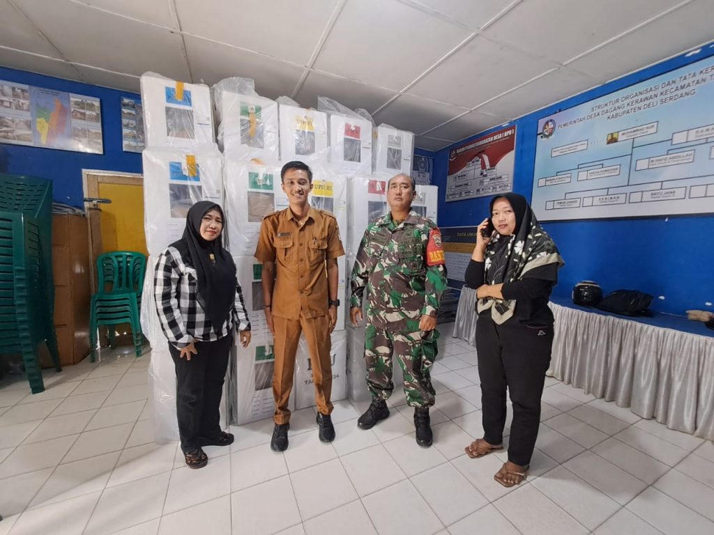Tanjung Morawa,Jelang Pemilu Tahun 2024 Tiga pilar bersama Pengurus PPS(Panitia Pemungutan Suara)Bersinergi pengamanan Logistik Kotak Suara Pemilu Tahun 2024 Di wilayah Desa Tanjung Morawa B Kec.Tanjung Morawa Kab.Deli Serdang,Selasa 13 Feb 2024.
