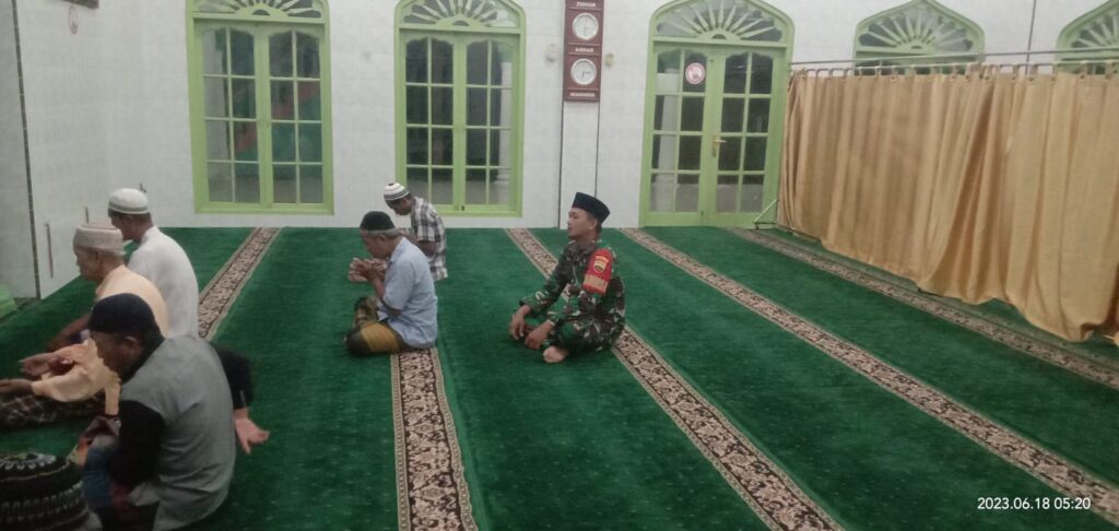 MEDAN – Dalam rangka memakmurkan Rumah ibadah sekaligus mempererat hubungan silaturahmi dengan warga Babinsa Koramil 0201-10/MM Kodim 0201/Medan an Serda Erwin dan Serda Agung Pradhana melaksanakan Sholat Subuh berjamaah di Masjid Al-Ikhlas dan Mesjid Al-Muttaqin di wilayah teritorial Koramil 0201-10/MM kecamatan Medan Marelan dan Kecamatan Medan labuhan, Minggu (18/06/2023).