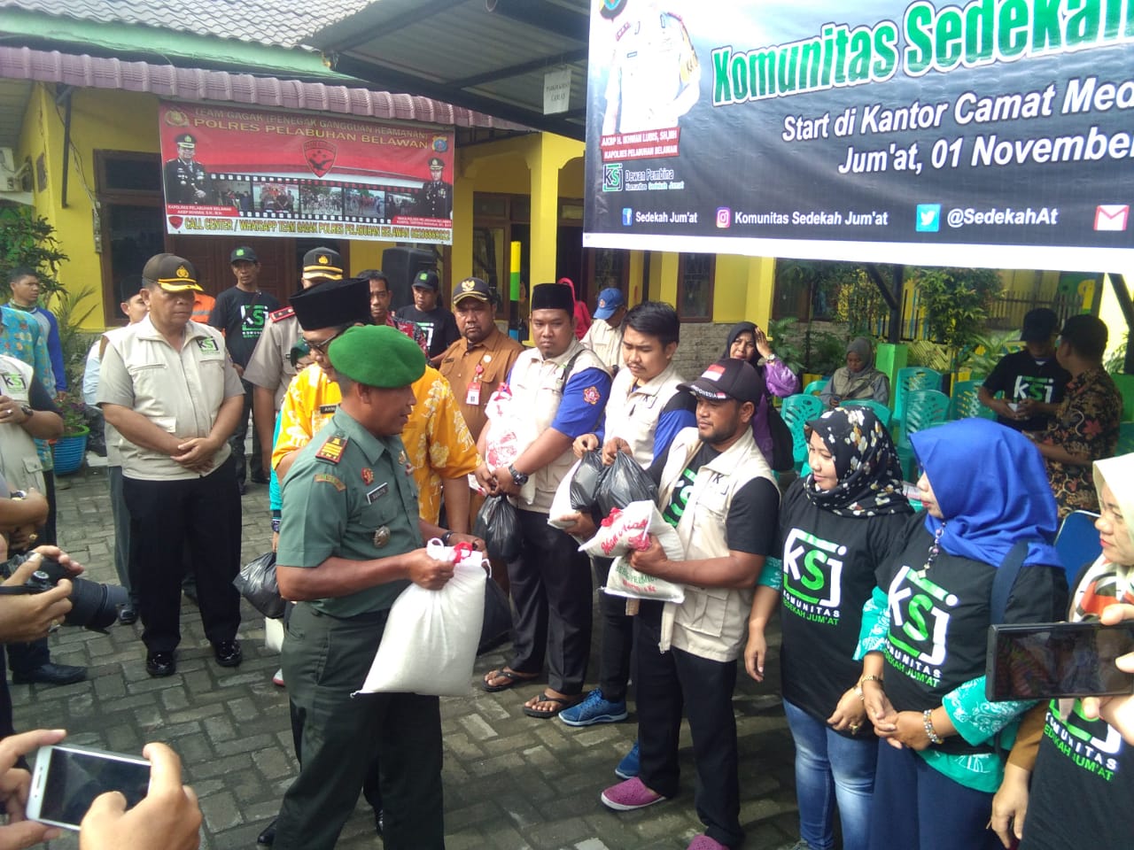 Kegiatan ini diselenggarakan oleh Komunitas Sedekah Jumat (SKJ) di halaman kantor Camat Medan Belawan di Jalan Cimanuk, Kel Belawan. Sebanyak 100 orang menerima bantuan tersebut.