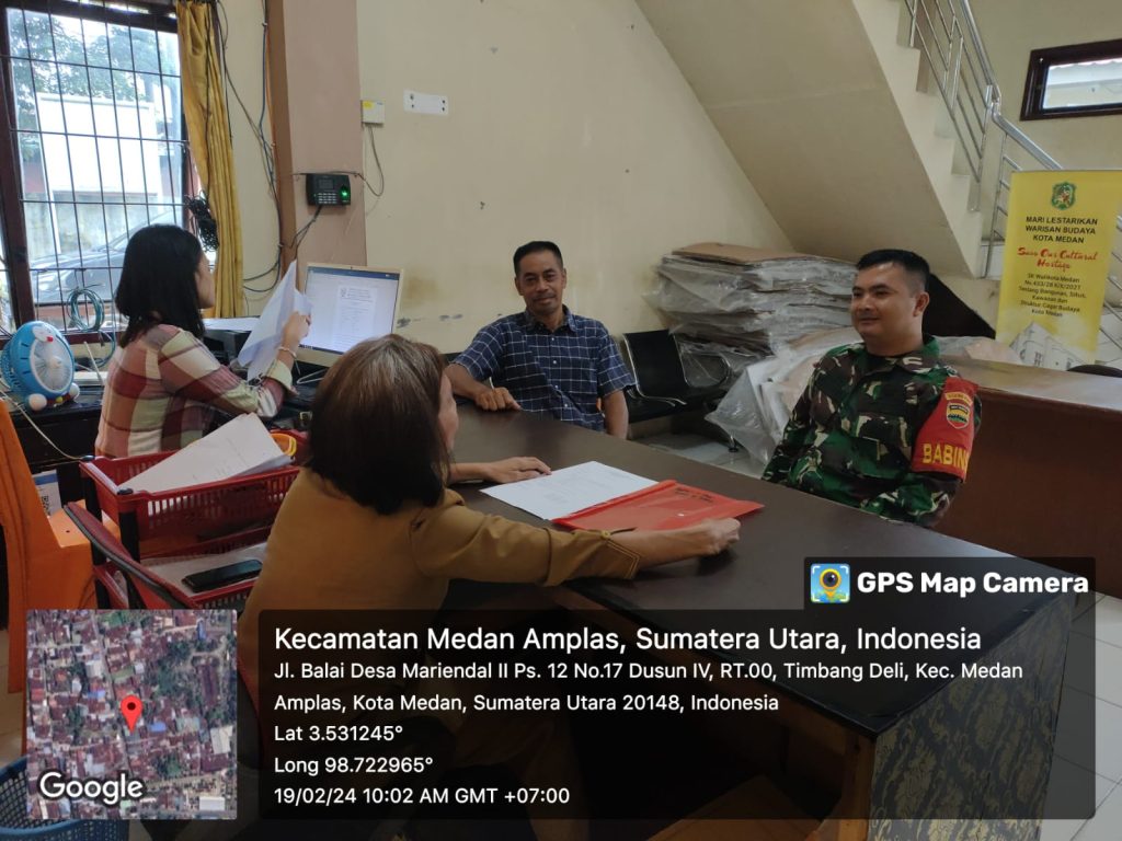 Guna terwujudnya kekompakan dan kebersamaan serta untuk memperlancar pelaksanaan tugas sehari – hari di wilayah binaannya, Babinsa Koramil 0201-08/MA Kodim 0201/Medan Serda M.Zalukhu melaksanakan Komunikasi Sosial (Komsos) bersama Kepala Lingkungn (Kepling) dan Staf Kelurahan Timbang Deli, bertempat di Kantor Lurah Timbang Deli, Jalan Balai Desa, Kecamatan Medan Amplas, Senin 19 Februari 2024.
